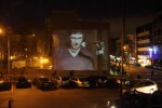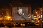 - Joshua Furst projected on the wall across the street